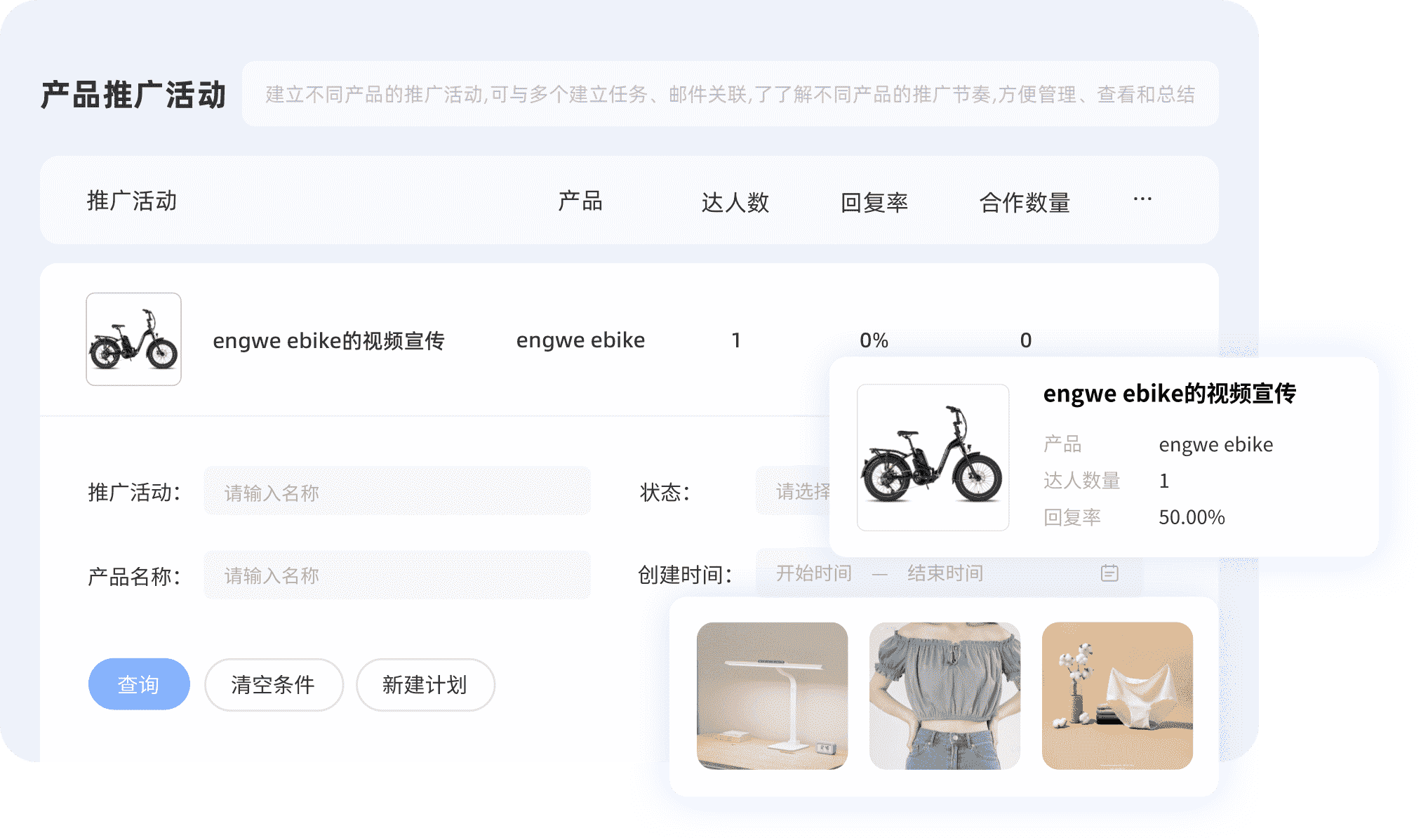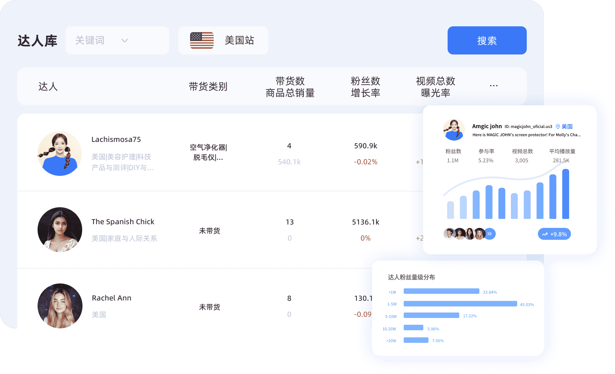 高效尋找并聯系達人,預判合作風險,追蹤效果,沉淀達人池,閉環管理,多次合作。